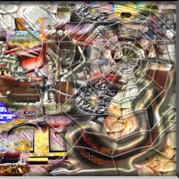 Pinceladas experienciales sencillas y compuestas, rellenan el lienzo. Una telaraña, garantiza que las energías transmitidas por todos los materiales y elementos, queden en el escenario del cuadro.